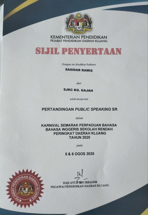 - PERTANDINGAN PUBLIC SPEAKING KARNIVAL SEMARAK PERPADUAN BAHASA INGGERIS SEKOLAH RENDAH PERINGKAT DAERAH KLUANG TAHUN 2025