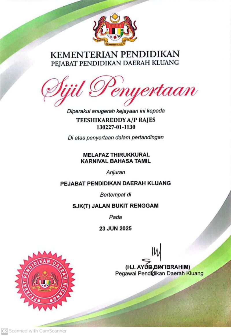 Tempat | : | SJKT JALAN BUKIT RENGGAM |
