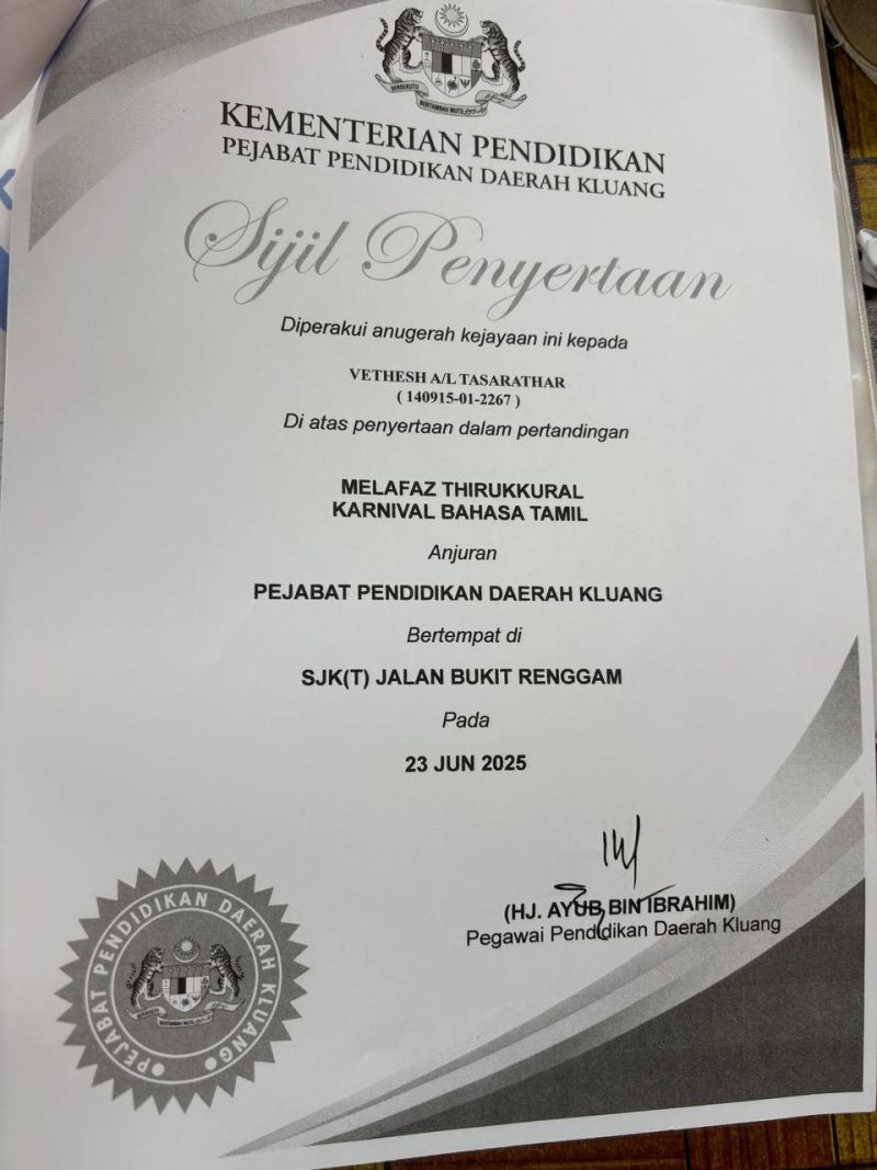 2 | VETHESH A/L TASARATHAR | Penyertaan |