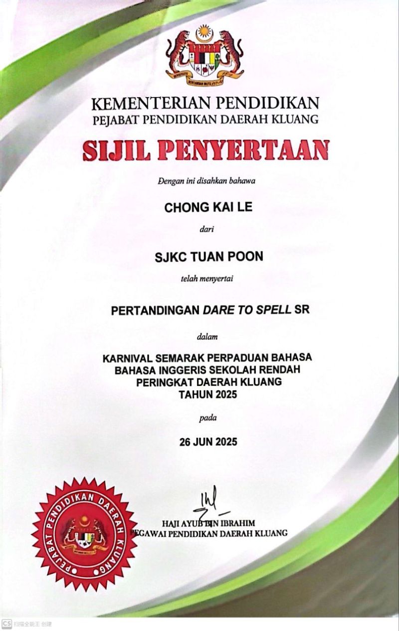 1 | CHONG KAI LE | Penyertaan |