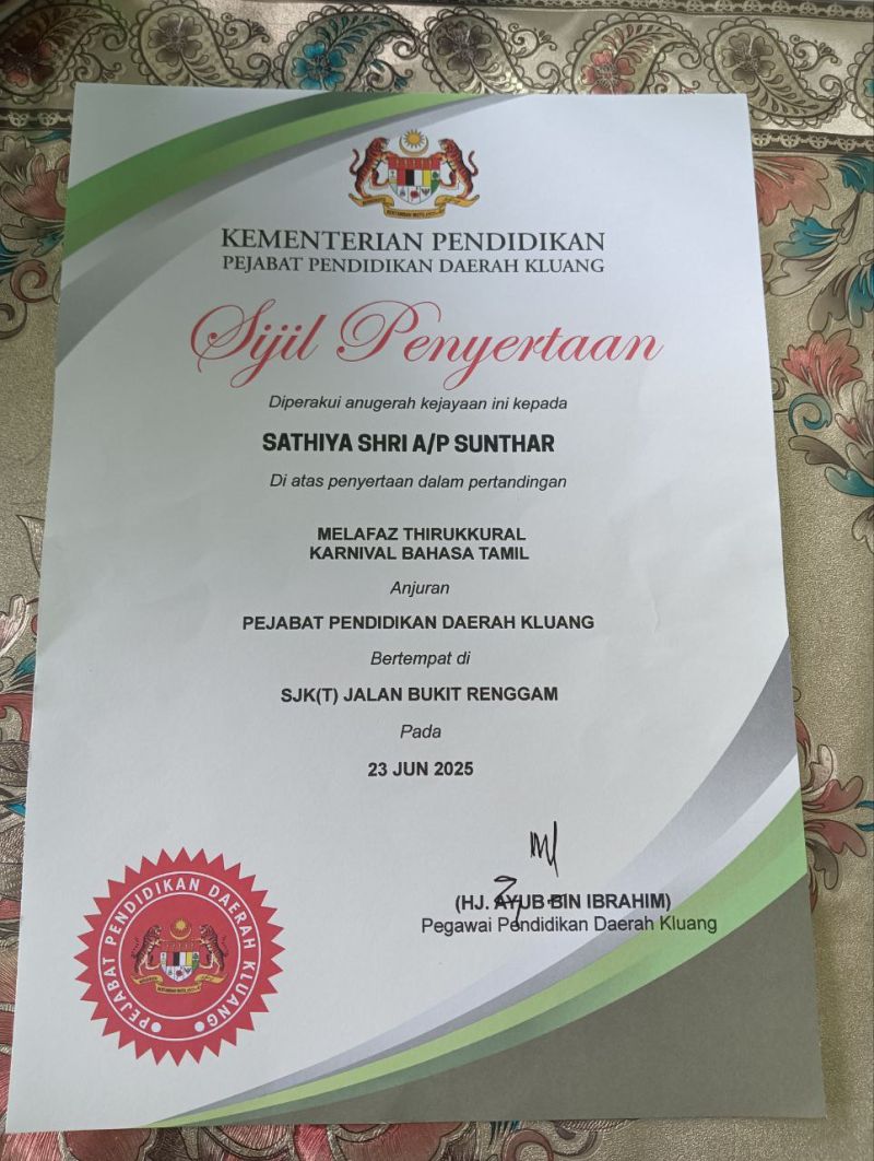 1 | SATHIYA SHRI A/P SUNTHAR | Penyertaan |