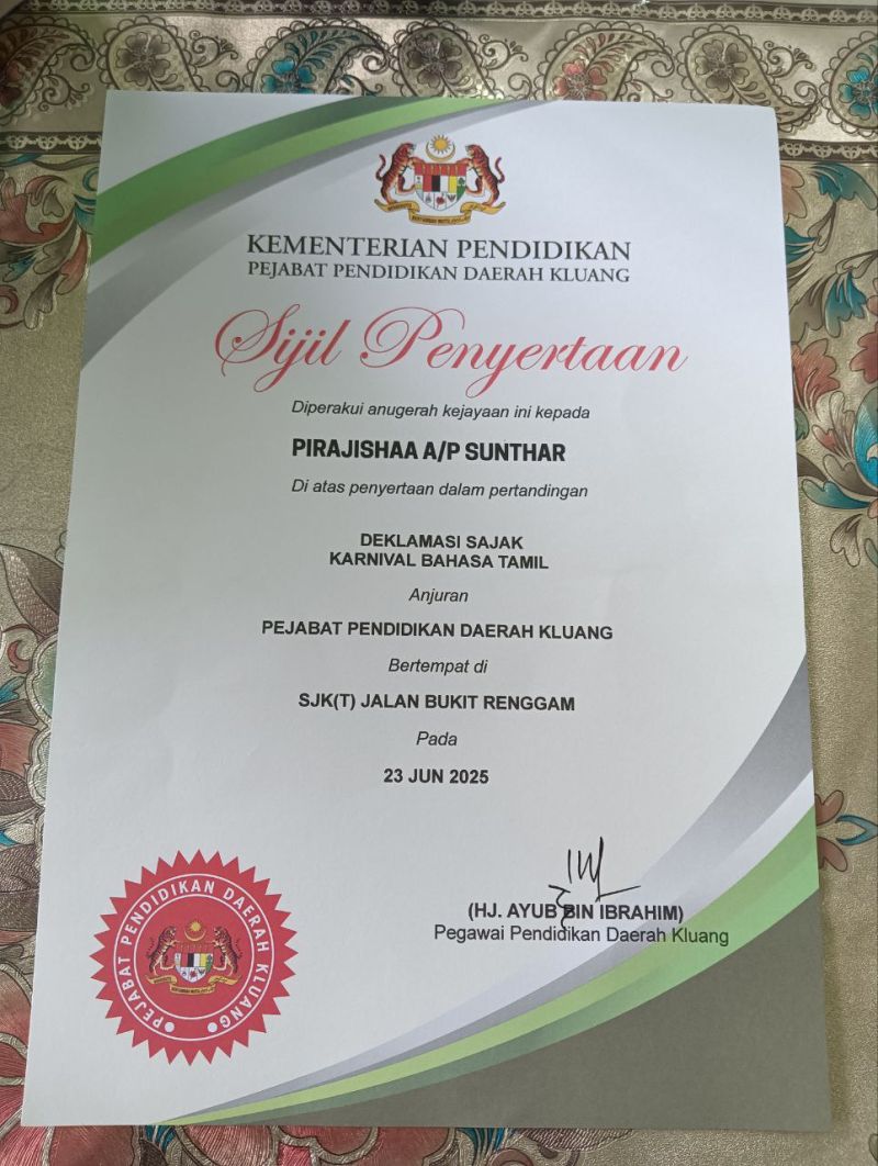 1 | PIRAJISHAA A/P SUNTHAR | Penyertaan |