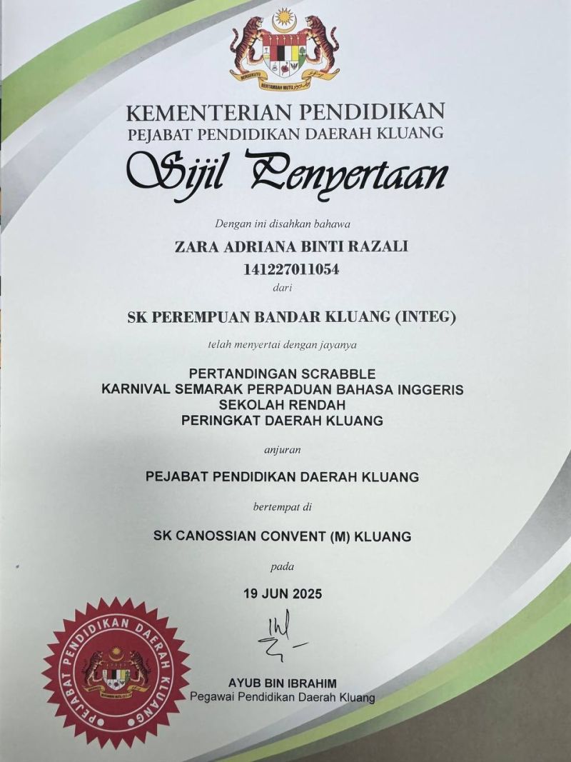 PERTANDINGAN SCRABBLE KARNIVAL SEMARAK PERPADUAN BAHASA INGGERIS SEKOLAH RENDAH PERINGKAT DAERAH KLUANG