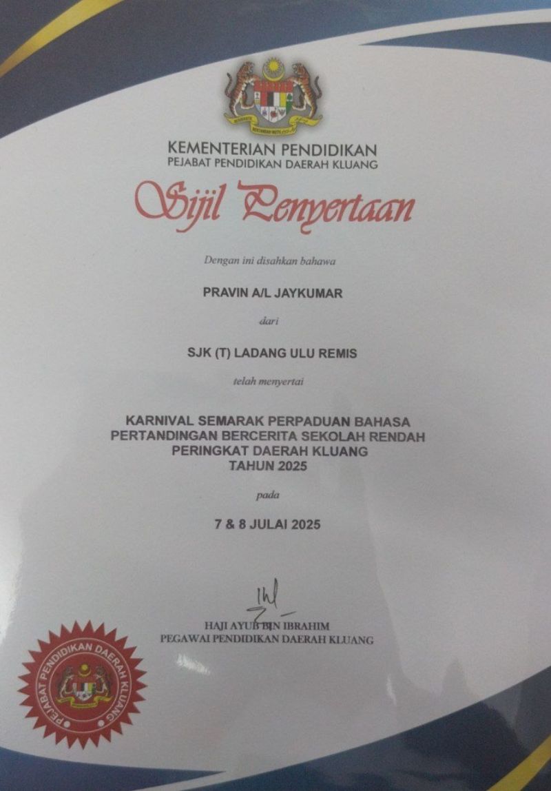 1 | PRAVIN A/L JAYKUMAR | Penyertaan |