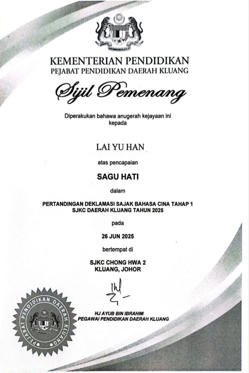 PERTANDINGAN DEKLAMASI SAJAK BAHASA CINA TAHAP 1 SJKC DAERAH KLUANG