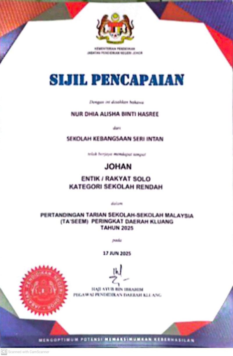 1 | NUR DHIA ALISHA BINTI HASREE | Johan |