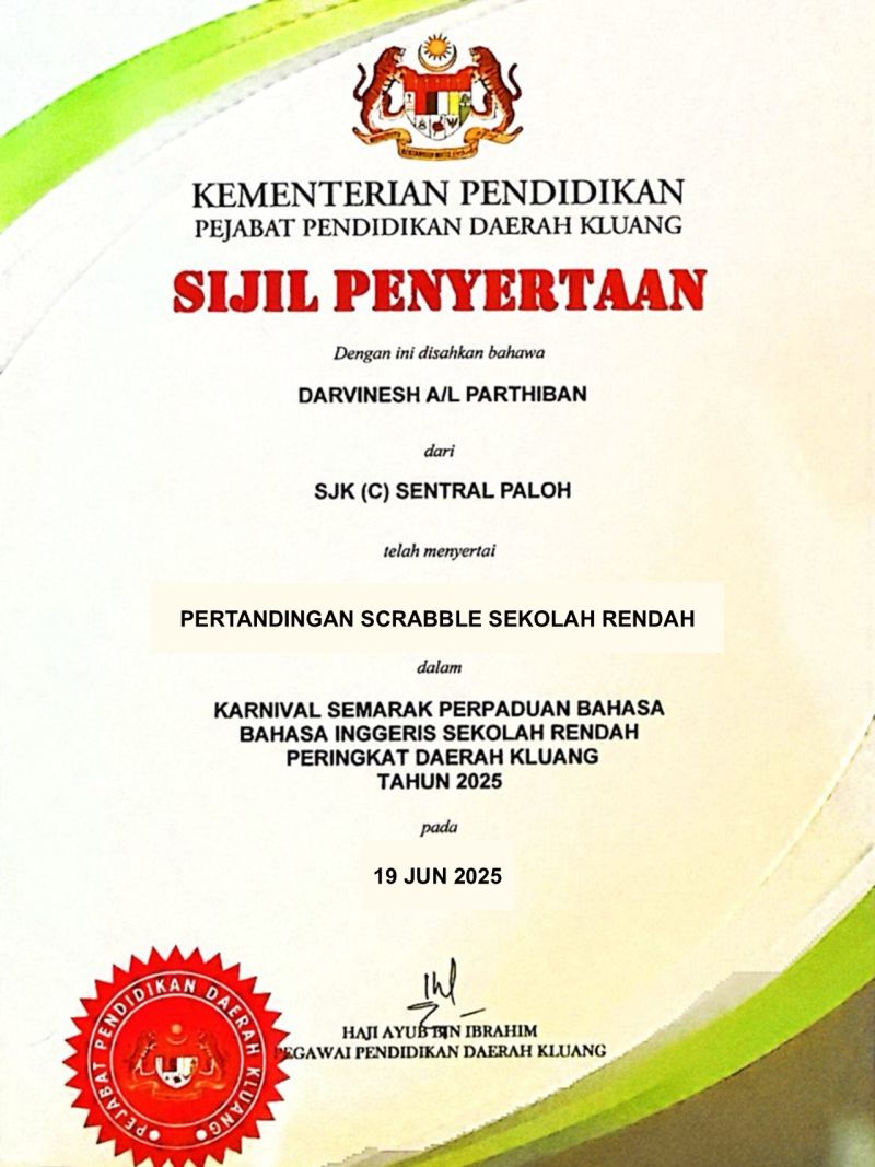PERTANDINGAN SCRABBLE KARNIVAL SEMARAK PERPADUAN BAHASA INGGERIS SEKOLAH RENDAH PERINGKAT DAERAH KLUANG TAHUN 2025
