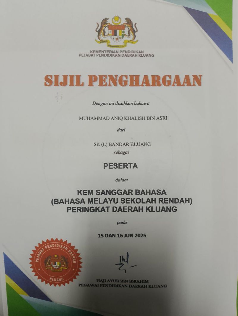 KEM SANGGAR BAHASA (BAHASA MELAYU SEKOLAH RENDAH) PERINGKAT DAERAH KLUANG
