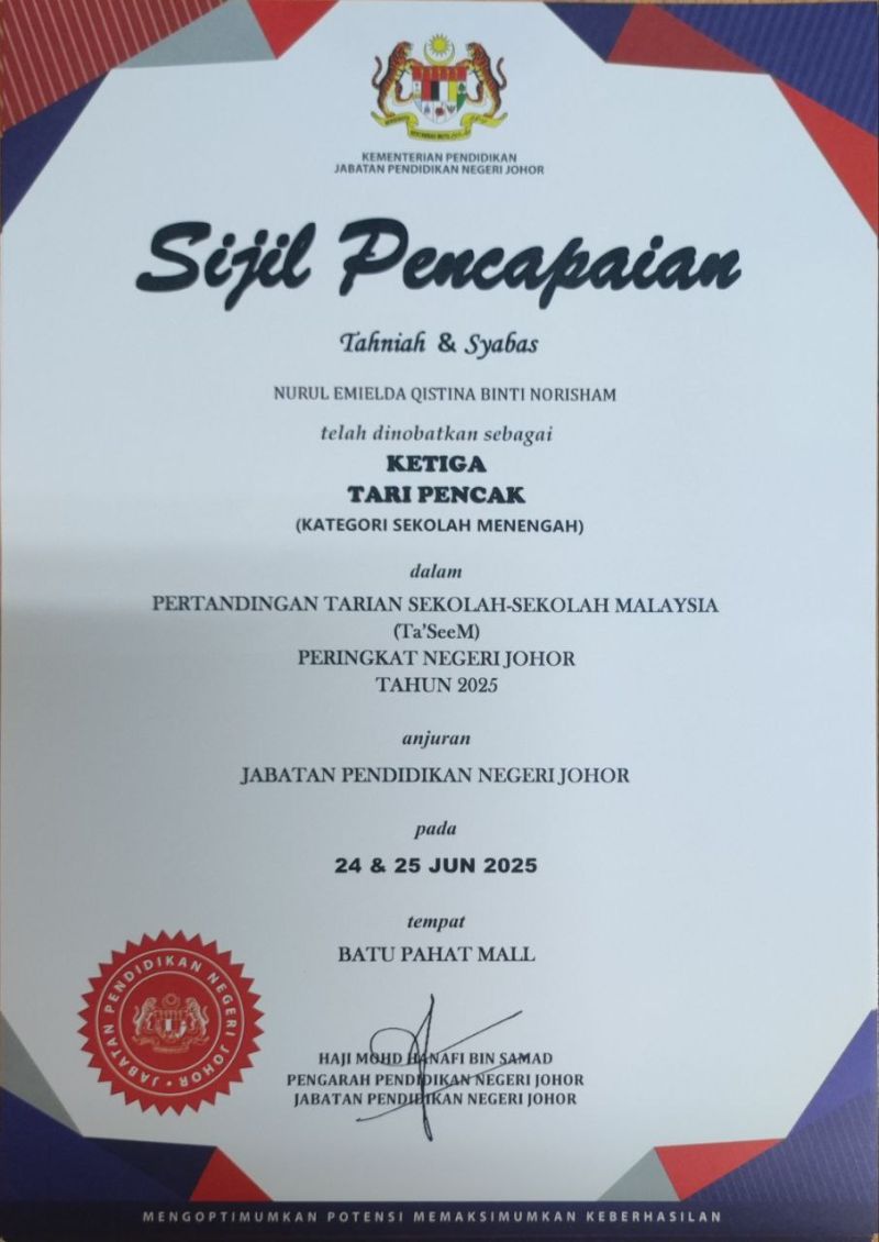 8 | NURUL EMIELDA QISTINA BINTI NORISHAM | Ketiga |