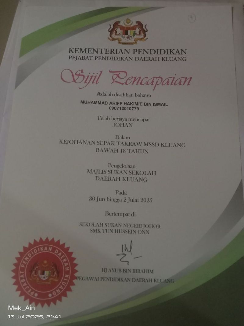 4 | MUHAMMAD ARIFF HAKIMIE BIN ISMAIL | Johan |