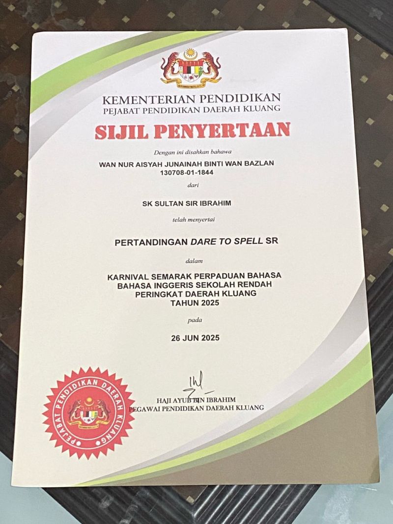 PERTANDINGAN DARE TO SPELL KARNIVAL SEMARAK PERPADUAN BAHASA DAERAH KLUANG