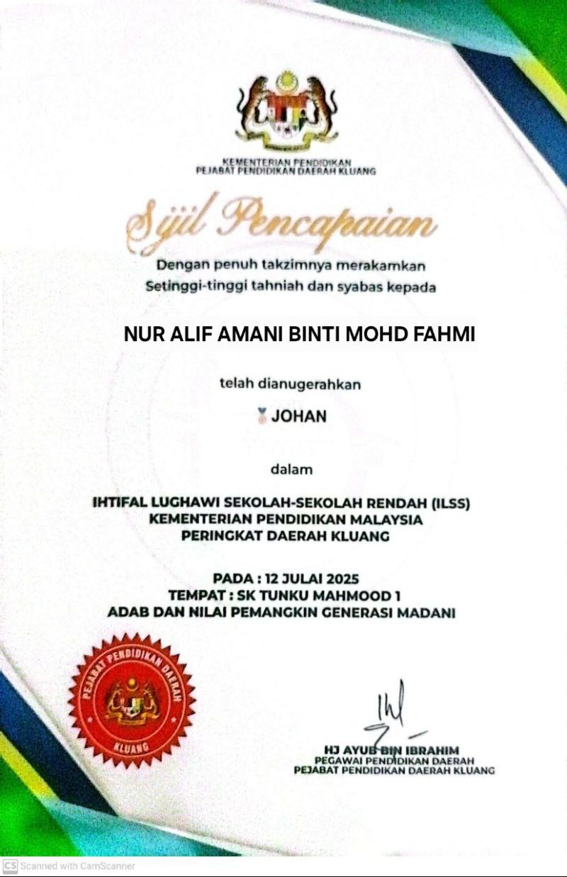 1 | NUR ALIF AMANI BINTI MOHD FAHMI | Johan |