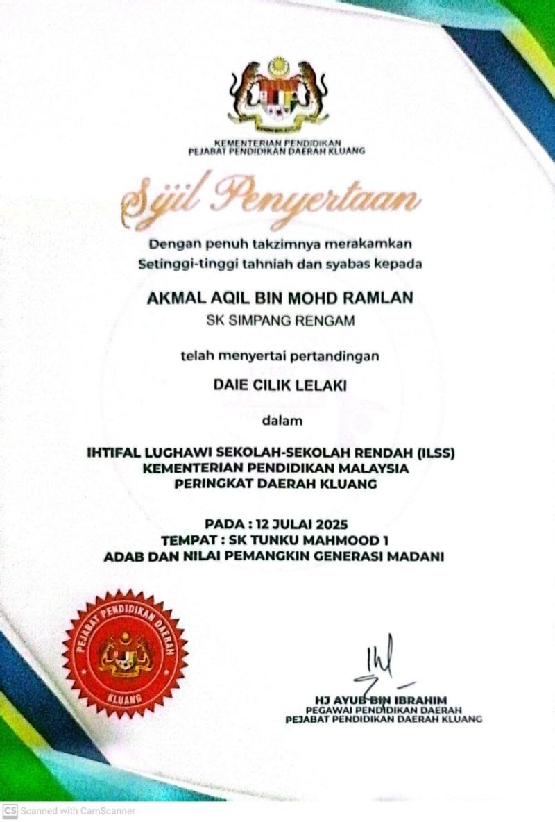 1 | AKMAL AQIL BIN MOHD RAMLAN | Penyertaan |
