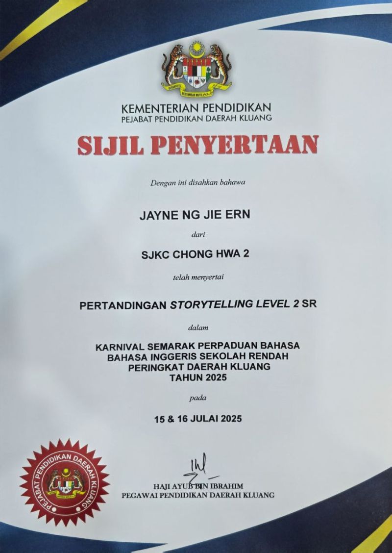 1 | JAYNE NG JIE ERN | Penyertaan |