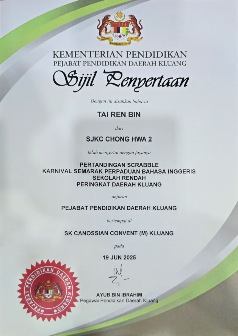 Tempat | : | SK CANOSSIAN CONVENT (M) KLUANG |
