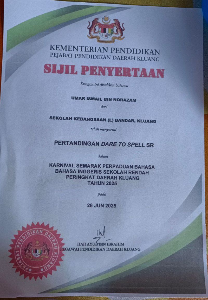 1 | UMAR ISMAIL BIN NORAZAM | Penyertaan |