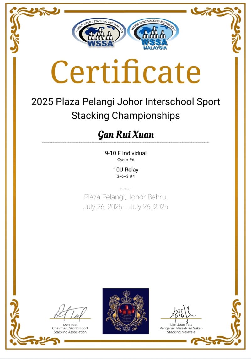WSSA 2025 PLAZA PELANGI JOHOR INTERSCHOOL SPORT STACKING CHAMPIONSHIPS