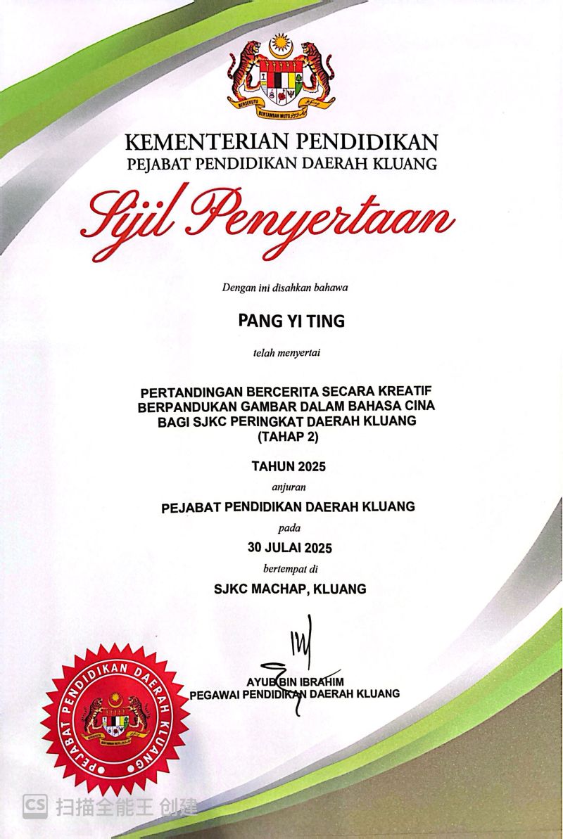 PERTANDINGAN BERCERITA SECARA KREATIF BERPANDUKAN GAMBAR DALAM BAHASA CINA DAERAH KLUANG 2025