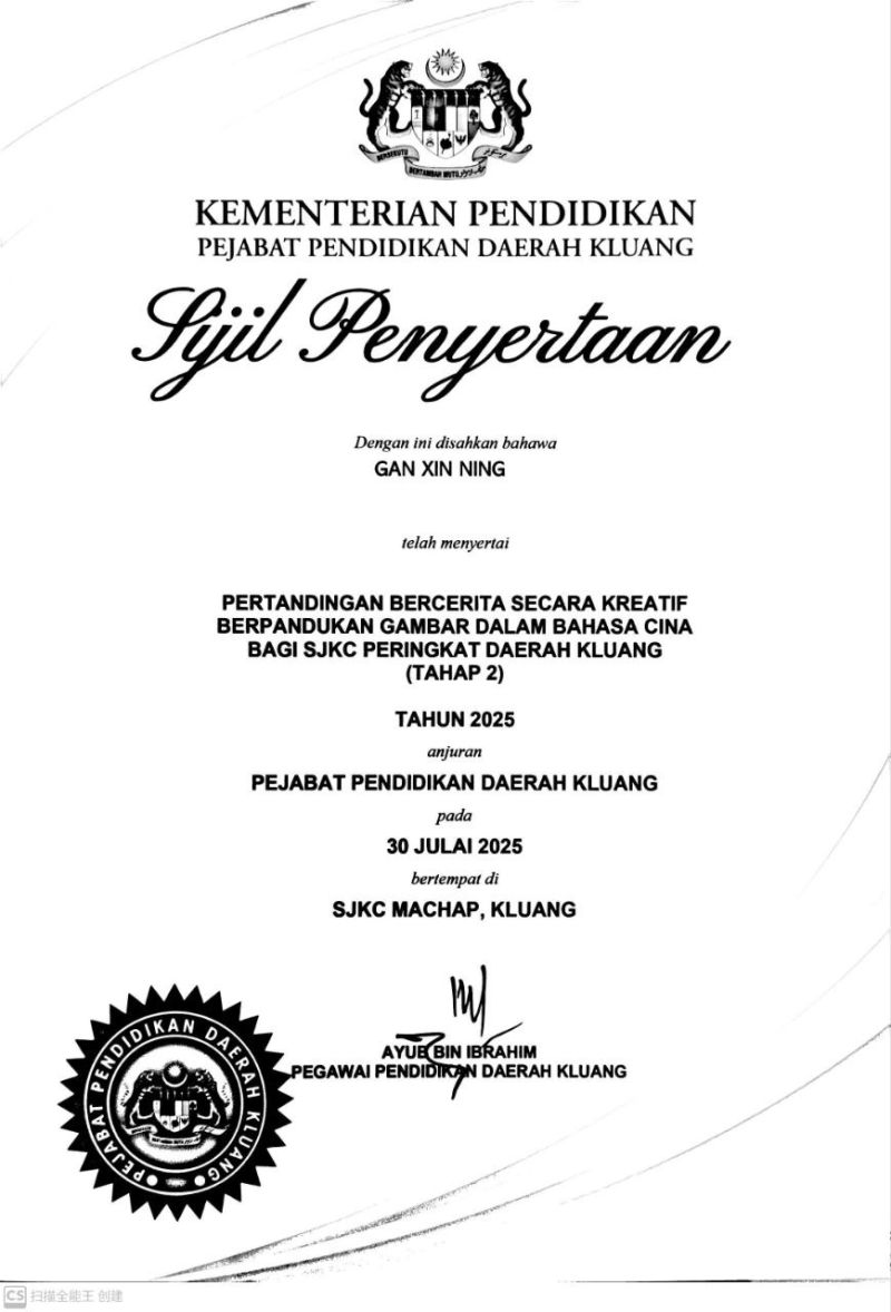PERTANDINGAN BERCERITA SECARA KREATIF BERPANDUKAN GAMBAR DALAM BAHASA CINA TAHAP 2 BAGI PERINGKAT DAERAH KLUANG TAHUN 2025