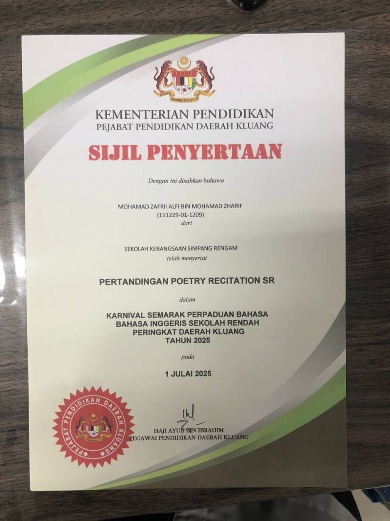 1 | MOHAMAD ZAFRII ALFI BIN MOHAMAD ZHARIF | Penyertaan |