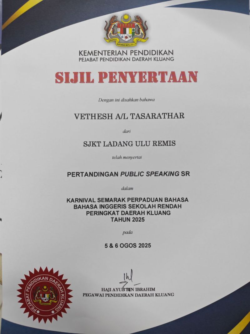 1 | VETHESH A/L TASARATHAR | Penyertaan |
