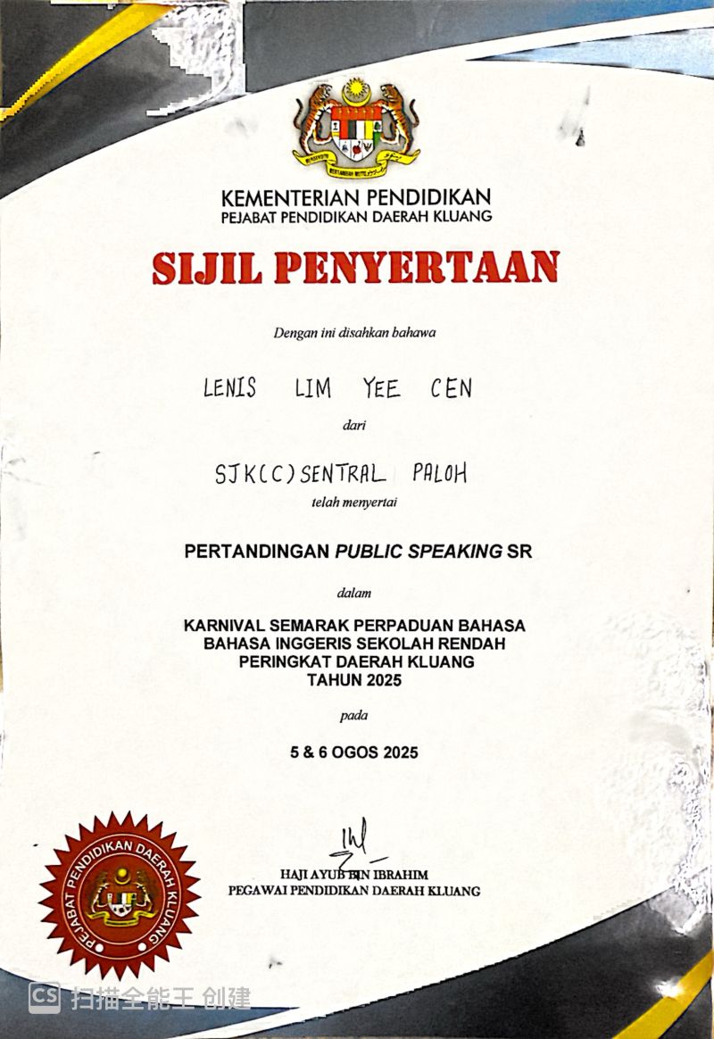 1 | LENIS LIM YEE CEN | Penyertaan |
