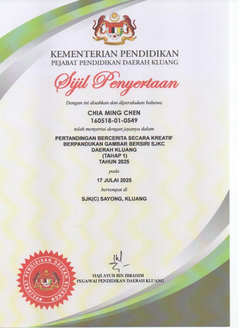 Pertandingan Bercerita Secara Kreatif Berpandukan Gambar Bersiri SJKC Daerah Kluang (Tahap 1)
