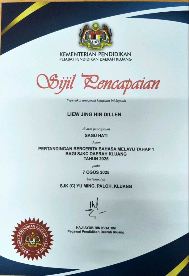 PERTANDINGAN BERCERITA BAHASA MELAYU TAHAP 1 BAGI SJKC DAERAH KLUANG