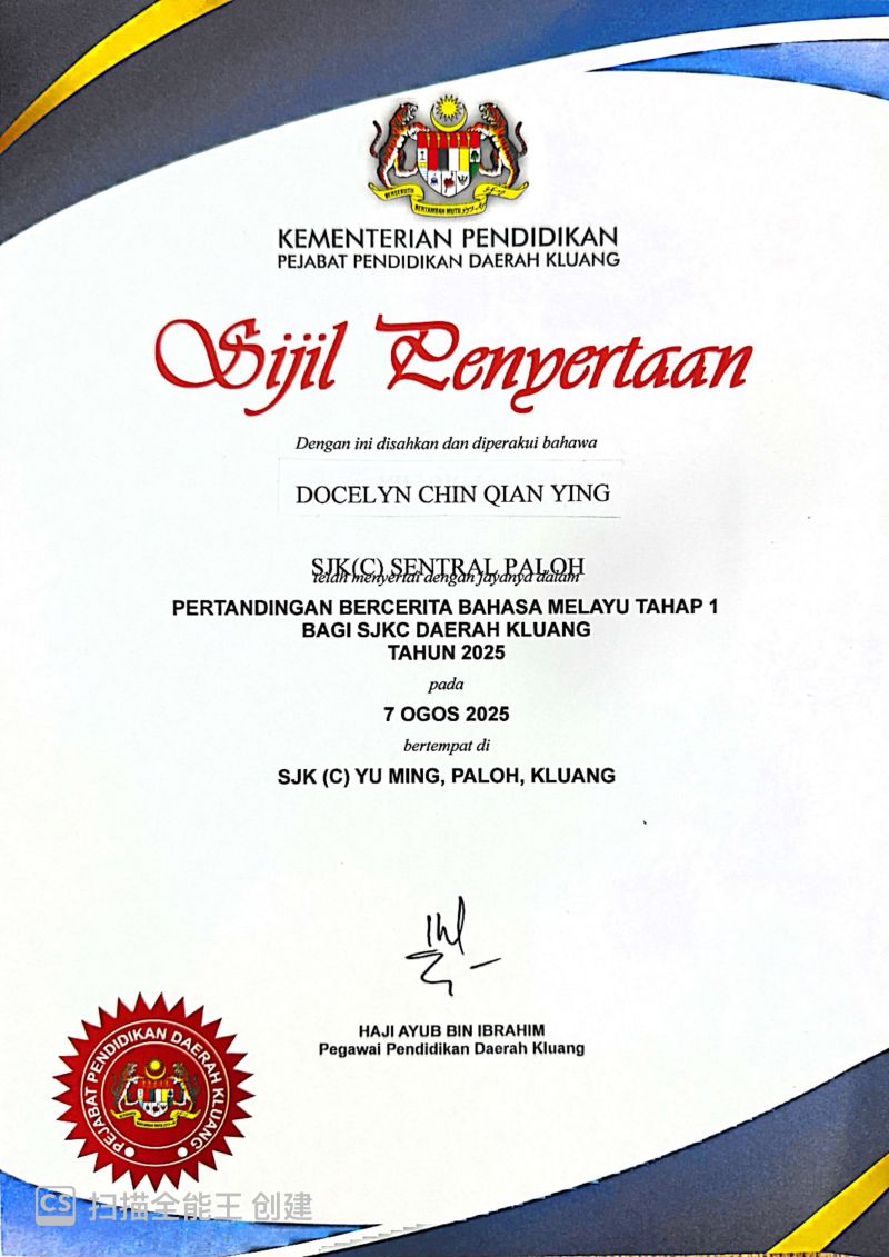 PERTANDINGAN BERCERITA BAHASA MELAYU TAHAP 1 BAGI SJKC DAERAH KLUANG TAHUN 2025