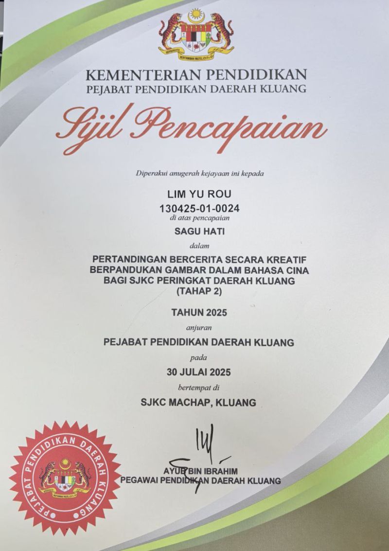 PERTANDINGAN BERCERITA SECARA KREATIF BERPANDUKAN GAMBAR DALAM BAHASA CINA BAGI SJKC PERINGKAT DAERAH KLUANG