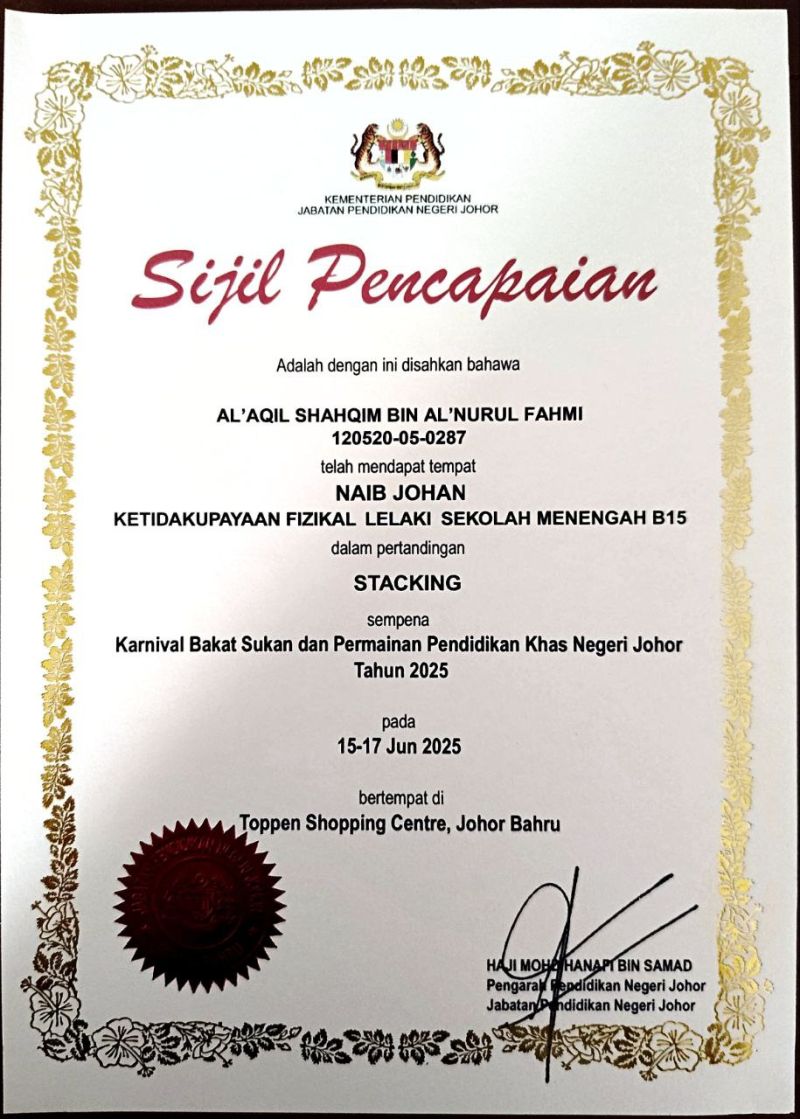 PERTANDINGAN STACKING SEMPENA KARNIVAL BAKAT SUKAN DAN PERMAINAN PENDIDIKAN KHAS NEGERI JOHOR TAHUN 2025