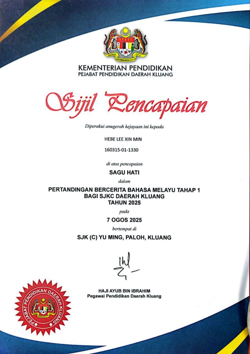 PERTANDINGAN BERCERITA BAHASA MELAYU TAHAP 1 BAGI SJKC DAERAH KLUANG