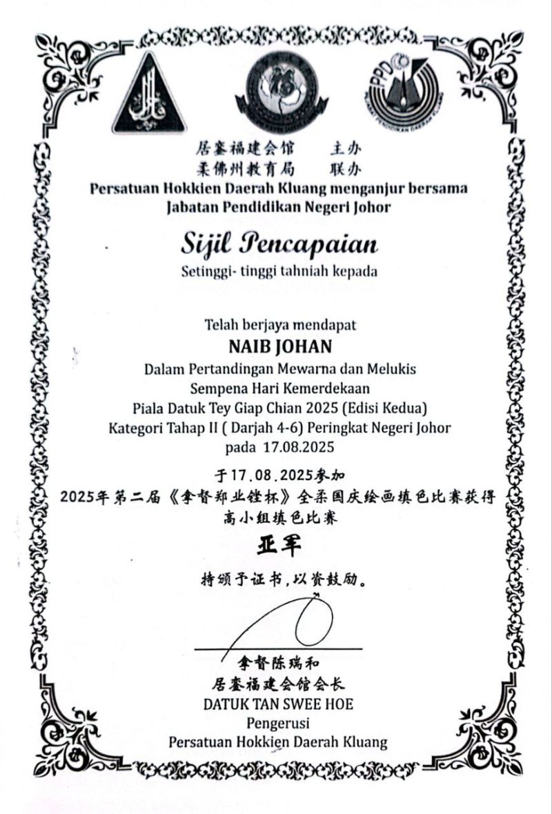 PERTANDINGAN MEWARNA DAN MELUKIS SEMPENA HARI KEMERDEKAAN PIALA DATUK TEY GIAP CHIAN