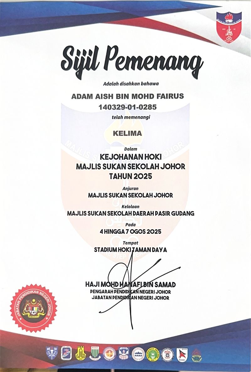 1 | ADAM AISH BIN MOHD FAIRUZ | Penyertaan |