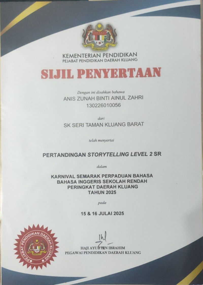 PERTANDINGAN STORYTELLING LEVEL 2 KARNIVAL SEMARAK PERPADUAN BAHASA INGGERIS SEKOLAH RENDAH PERINGKAT DAERAH KLUANG TAHUN 2025