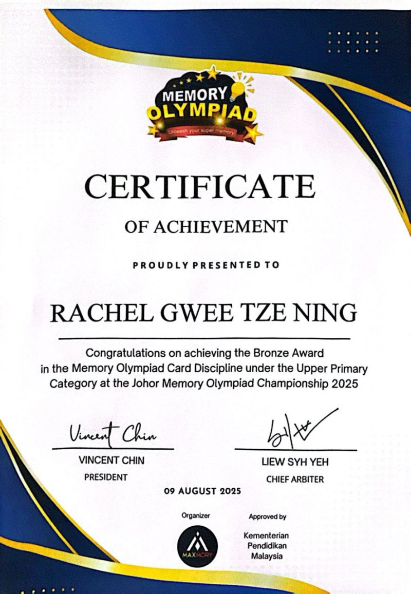 1 | RACHEL GWEE TZE NING | Ketiga |