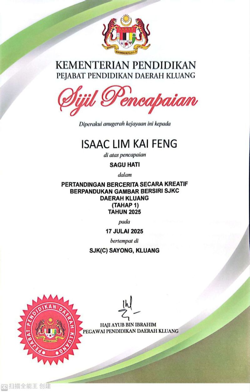 1 | Isaac Lim Kai Feng | Penyertaan |