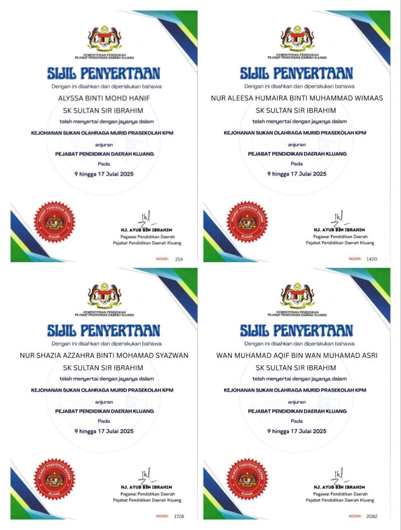 KEJOHANAN OLAHRAGA DAN SUKAN MURID PRASEKOLAH DAERAH KLUANG