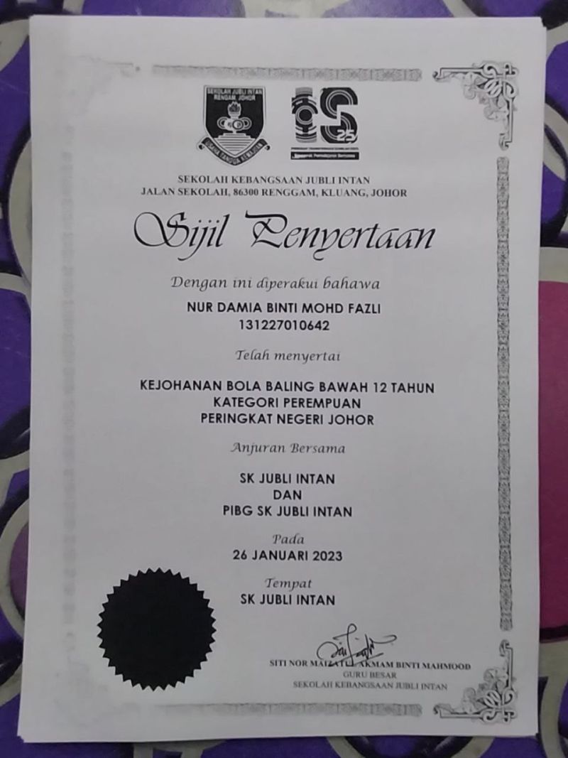 | 1 | NUR DAMIA BINTI MOHD FAZLI | Penyertaan |